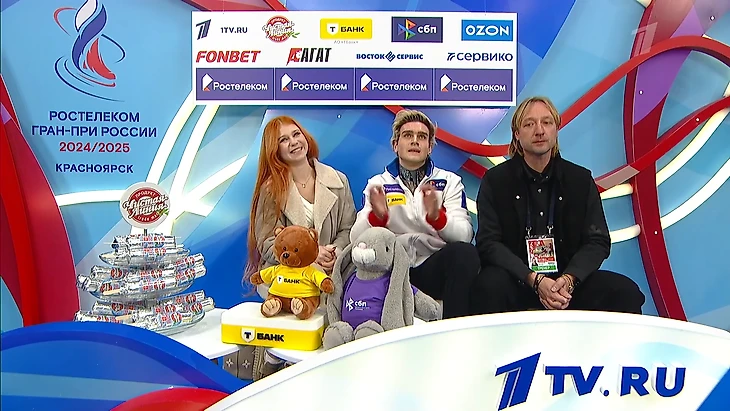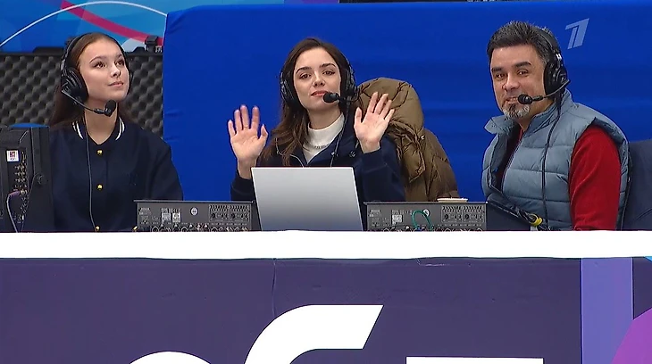 Медведева и Щербакова комментировали вместе с Гришиным. В итоге у микрофона трое Гришиных