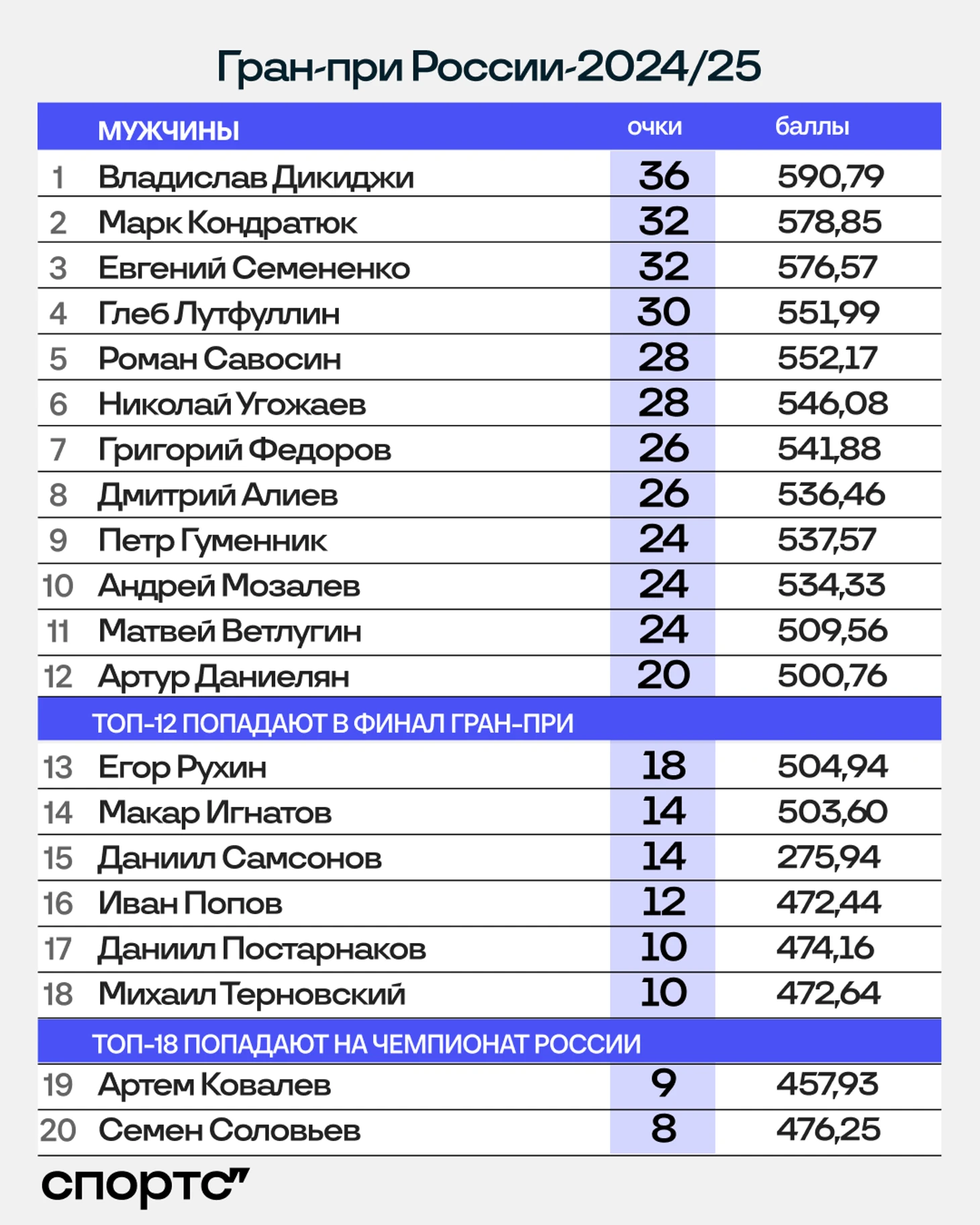 ● Общий зачет выиграл Владислав Дикиджи – единственный фигурист с двумя победами на этапах.