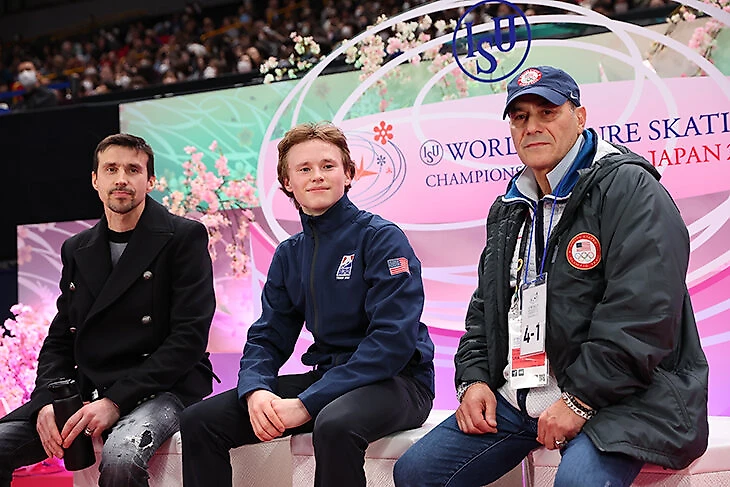 Он спокойно смотрит прокаты соперников и, по словам тренера (и отца) Романа Скорнякова, сам настраивается на выступление.