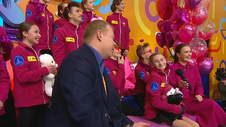 Впрочем, тут тоже не все получалось. Щербакова и Трусова задавали однотипные вопросы, и если Анна хотя бы держалась уверенно, то Саша часто сбивалась и делала паузы, чтобы послушать подсказки в «ухе». Зато не упустила шанс раздать свой мерч команде.