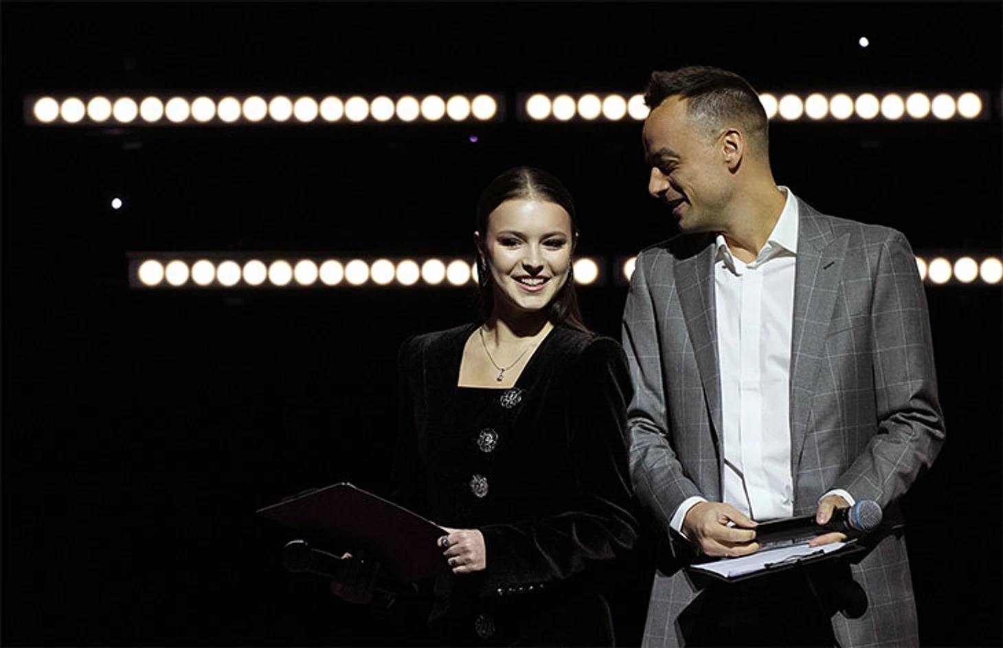 Уже потом, когда медали в танцах разыграли, новость на арену объявляли и дополняли возглавляющие ФФККР Антон Сихарулидзе и Александр Коган.