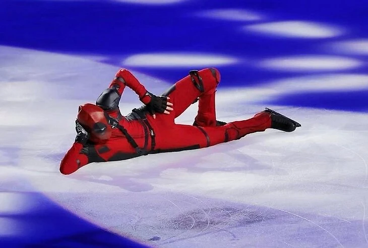 Тот самый танец Дэдпула (который, кстати, в начале сезона исполнили и российские фигуристы – правда, на полу) поставили быстро – минут за 30. Тренеры добавили движений от себя, так что танец немного отличается от киноверсии.