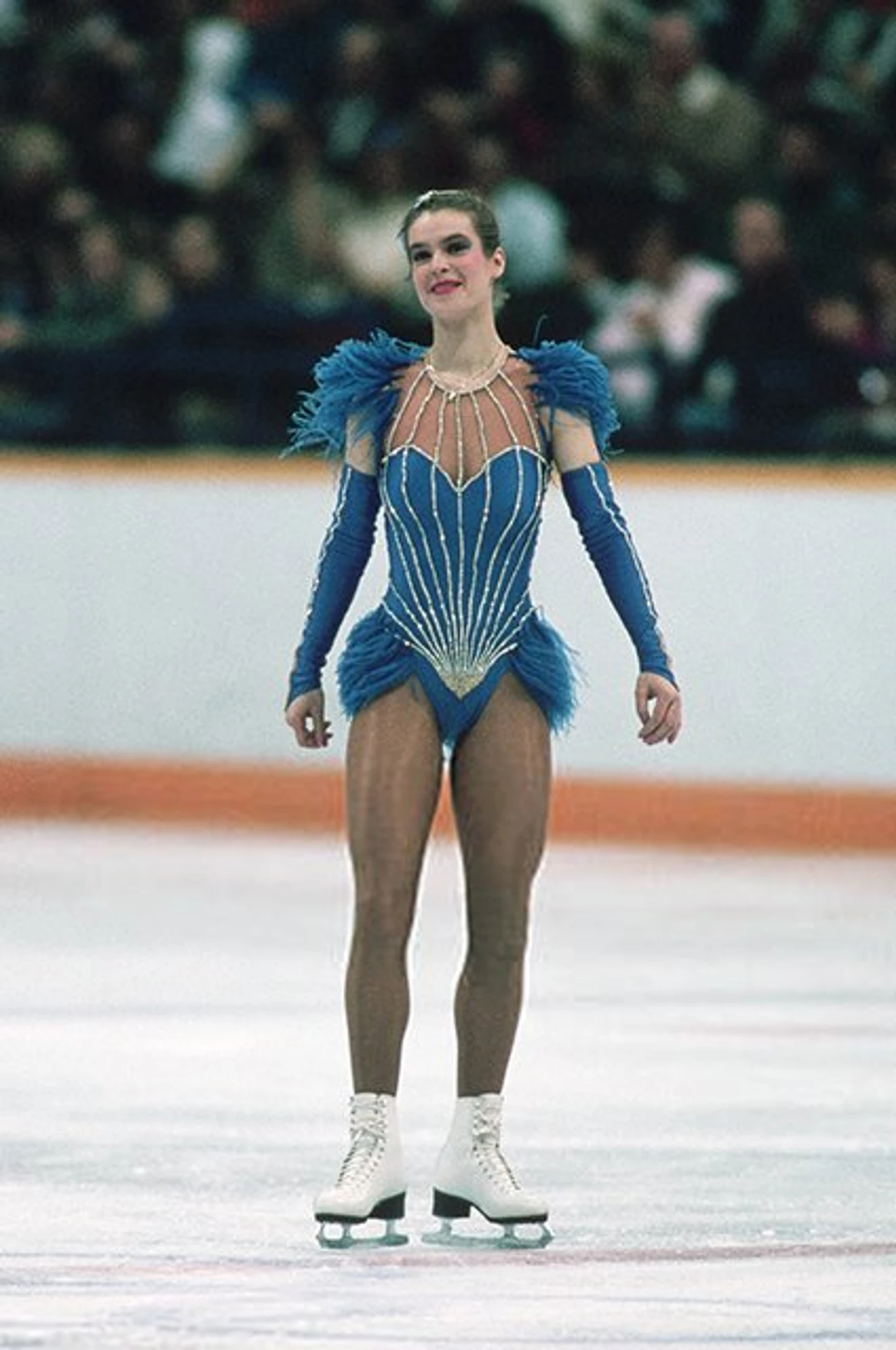 Катарина – не только легендарная спортсменка, но и воистину секс-символ фигурного катания (одна ее фотосессия для Playboy чего стоит). Ее соревновательные наряды тоже частенько выделялись своей яркостью и эффектностью, но самые знаковые вот эти: