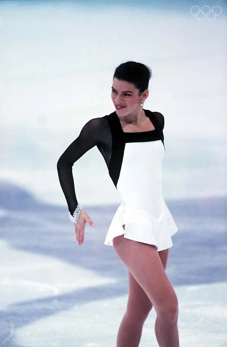 В этих костюмах Нэнси завоевала серебро Олимпиады -1994. Оба шикарные, достаточно лаконичные, но выглядят дорого. Что важно – платья подчеркивают данные фигуристки, но, при этом, не перетягивают внимание на себя, как это делает различный лоскутный ужОс или пестряк.
