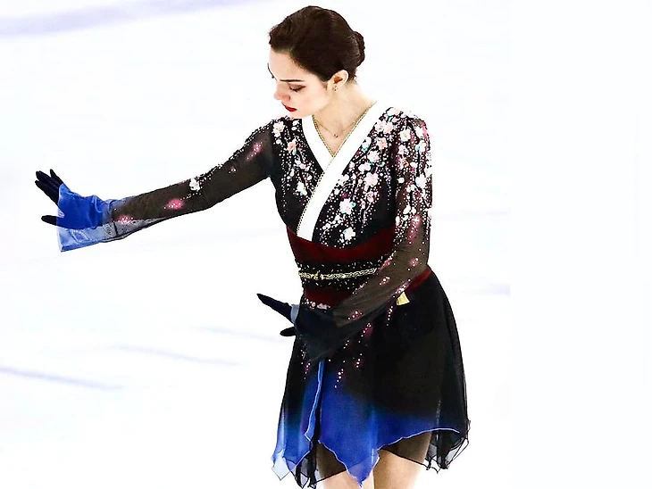 Один из самых эффектных костюмов Евгении под саундтрек к фильму «Мемуары Гейши». Это адаптация кимоно для выступлений на льду от японского дизайнера (-ки) Сатоми Ито.