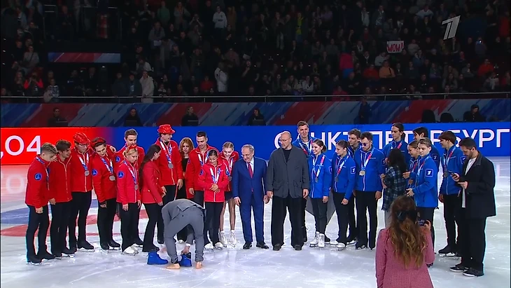Зрители командника неожиданно лишились чемпионского раунда и целого часа трансляции: от обещанных Первым каналом четырех часов соревнований осталось чуть больше трех. Возможно, за чемпионский финал отвечал Ягудин, загадочно дефилировавший по льду босиком во время награждения.