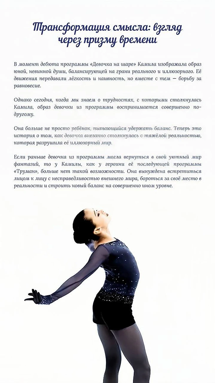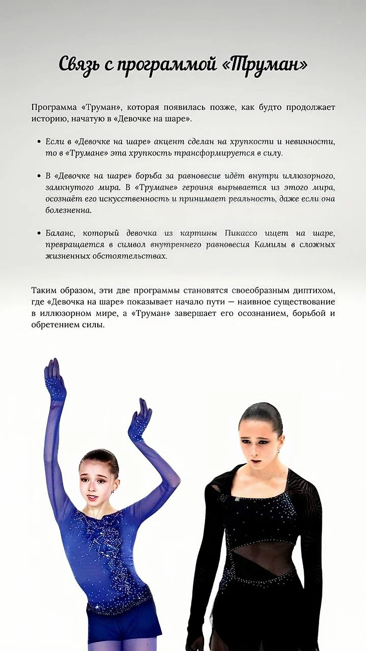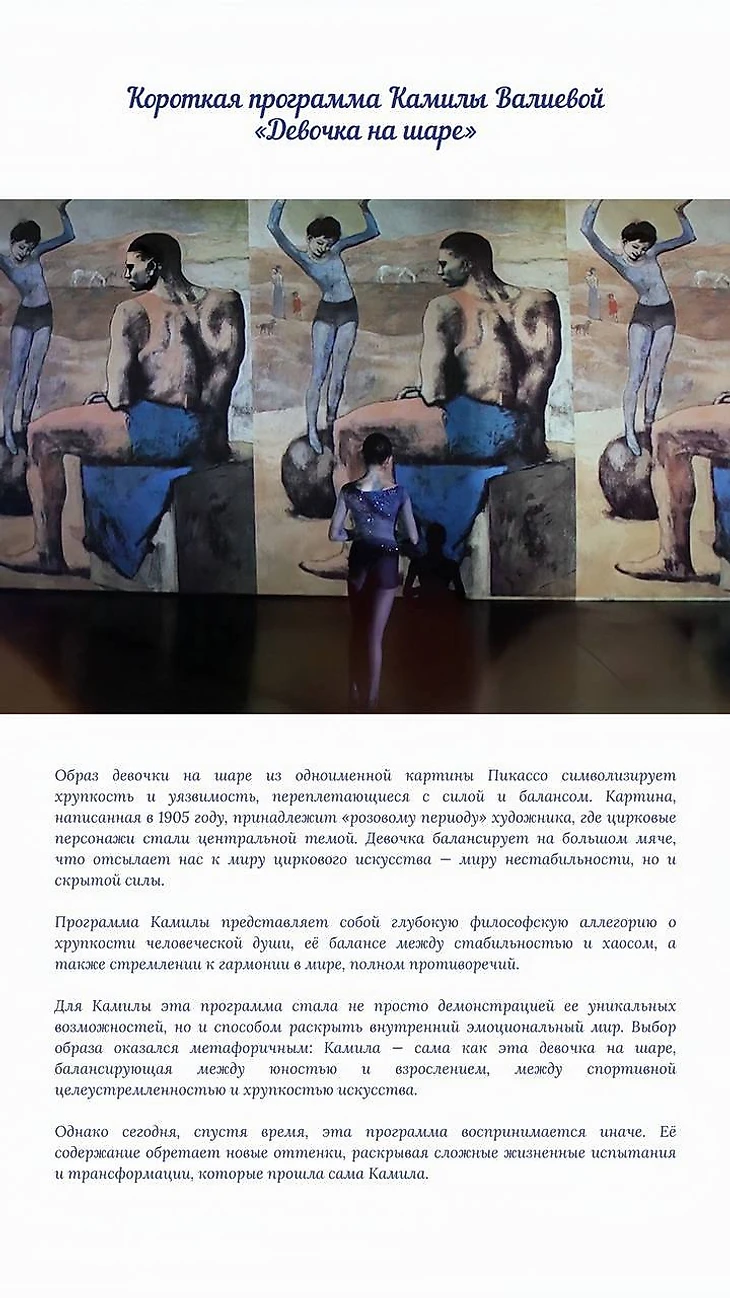 Сегодня мы хотим вспомнить короткую программу Камилы «Девочка на шаре», которая стала настоящим гимном изящества и искусства💙