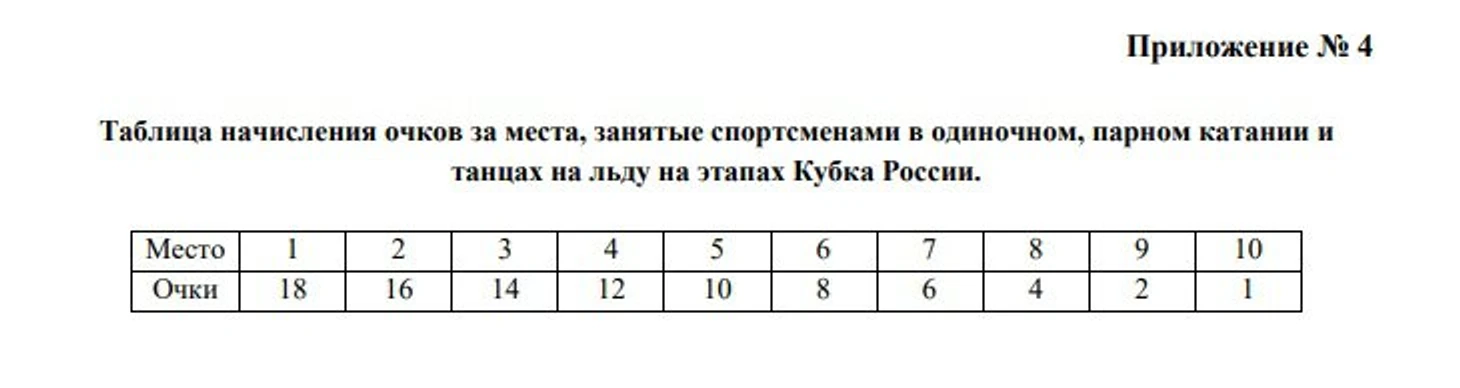 «К соревнованиям допускаются спортсмены, по программе МС, на основании суммы очков, набранных на 2 (двух) Всероссийских соревнованиях «Ростелеком Гран При России» (приложение 4)».