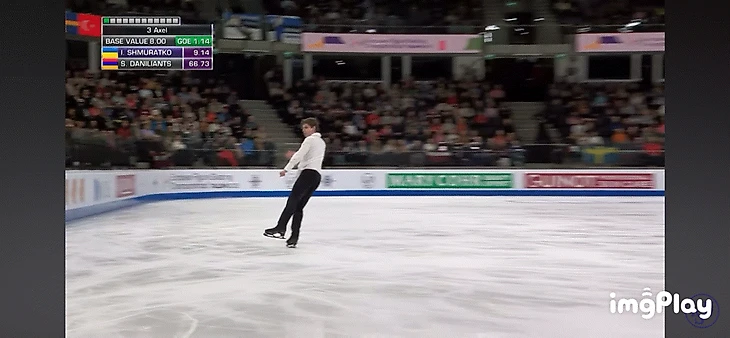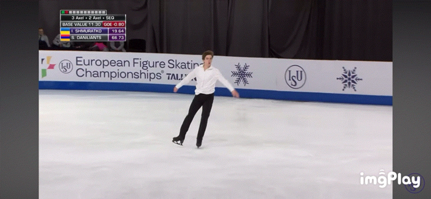 Ну и человек, который затмил собой всю произвольную у мужчин - это Иван Шмуратко. Серьезно, эта постановка легендарна как костюм скрипки Юлии Саутер. Gif-ка для затравочки, но рекомендую посмотреть этот шЫдевр.