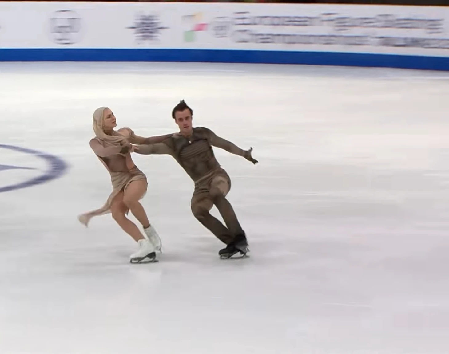 Ну и лучшая постановка этого Чемпионата - Оливия Смарт и Тим Дик. Своей хореографией они затягивают как зыбучие пески. Здесь играет абсолютно все: и костюм (спасибо Медисон Чок), эта накидка на голову делает Оливию такой загадочной, и звуки пересыпающегося песка, под который элементы перетекают друг в друга. Таким образом пара сама выглядит как пересыпающийся и закручивающийся песок. Очень хотелось их на пьедестал. Но… очередь есть очередь, кто бы что не говорил.