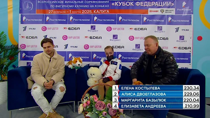 «Мы сейчас возвращаемся, у нее премия, денежный бонус, как всегда. Все впереди», – пообещал тренер Евгений Плющенко.