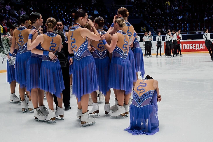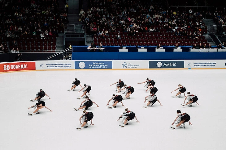 Выходные и День фигурного катания в Петербурге запомнились не только изгнанием журналистки с пресс-подхода Камилы Валиевой. Одновременно с этим проходили двухдневные соревнования – чемпионат и первенство России по синхронному катанию. Пусть это не олимпийский вид спорта, но явно самый умиротворенный из всех дисциплин фигурного катания.