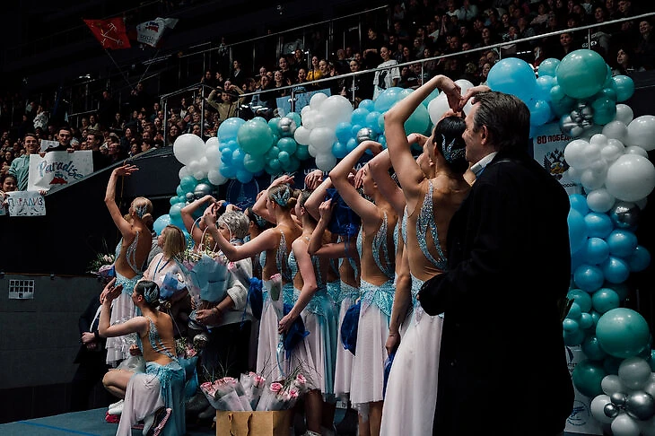 Победителям чемпионата – команде «Парадиз» – в этом году 30 лет. Ее придумали в 1994 году – тогда из Академии фигурного катания отчислили много одиночников, и директор школы создала команду, чтобы им было где кататься дальше. Все эти годы у них бессменный тренер – балетмейстер Ирина Яковлева. Она закончила консерваторию, больше 20 лет проработала в Ленинградском балете на льду, с нуля набирала команду в момент ее основания.