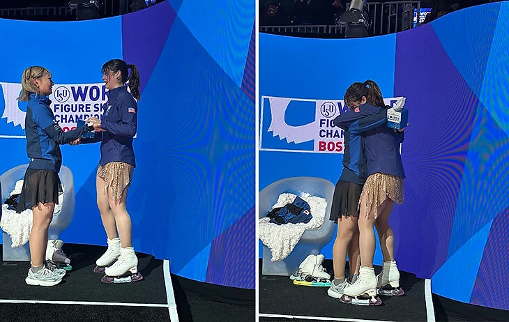 Награждать Алису вышел президент ISU Чжэ Ель Ким, а одним из первых подошел поздравить Илья Малинин. Он пришел на произвольную программу женщин поболеть за коллег по сборной и обнял Лью еще до церемонии награждения.