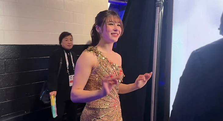 Каори Сакамото весь прокат Лью сидела на арене – в ISU придумали «кресло лидера», которое примыкает вплотную к КиКу.