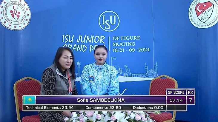 Накануне Самоделкина выиграла Спартакиаду Республики Казахстан с лучшим результатом в сезоне – 209,93 балла. Ближайшая соперница отстала на 63,38 балла. А еще Софья спела гимн Казахстана: