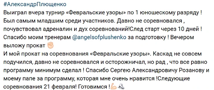 И даже в феврале 2021 года Саша Плющенко благодарит своего тренера-садиста, который его гнобил и оскорблял, по словам самого Александра.