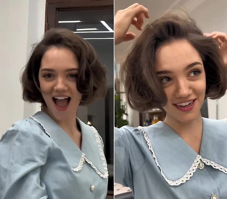 Лиза Худайбердиева обещала сделать новую стрижку, когда снимала Медведеву в салоне. И не обманула.