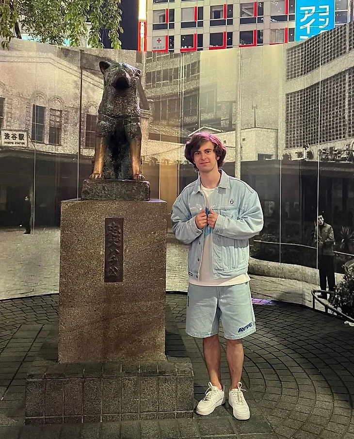 В Токио и Марк Кондратюк: там он посещал музеи и фотографировался с памятником Хатико.