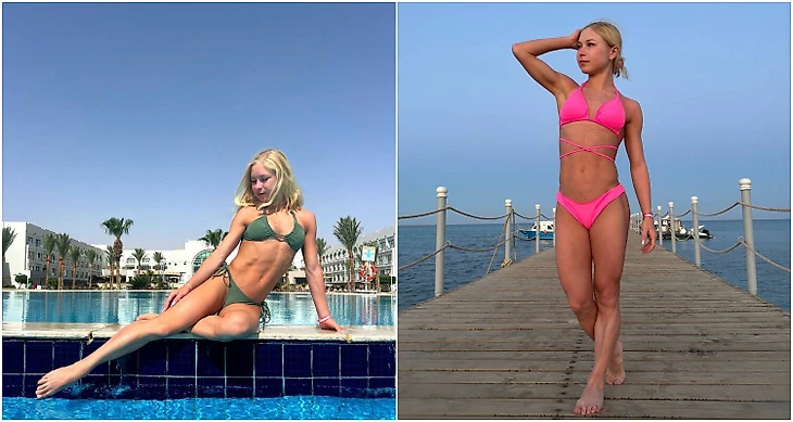 Анастасия Мухортова привезла много красивых купальников в Египет.