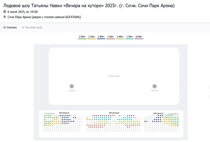 В «Сочи Парке» трибуны небольшие, и там даже бывает так любимый нашими фигуристами солд-аут. Места на воскресное шоу 6 июля постепенно расходятся в течение дня: