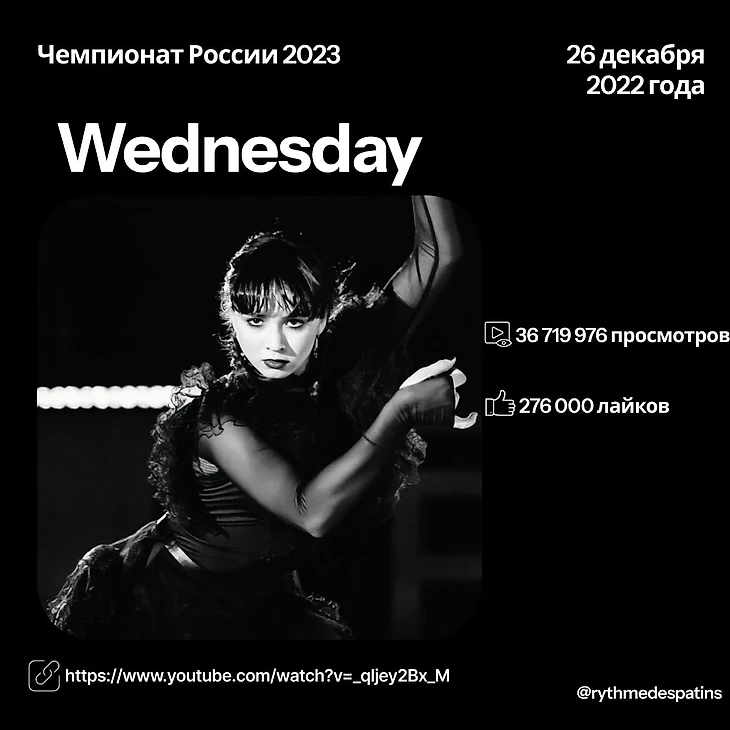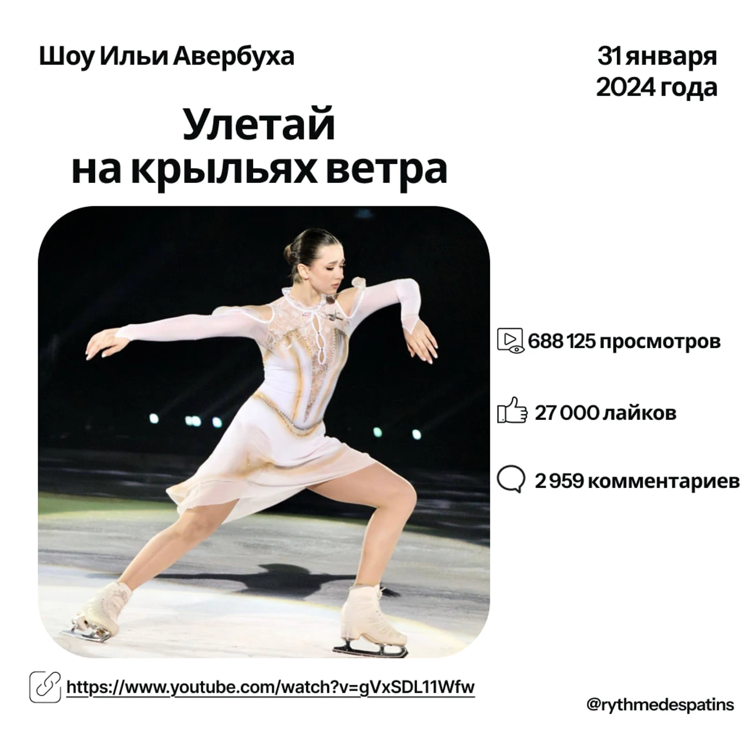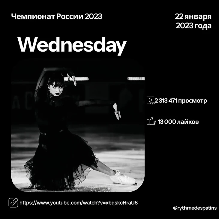 Пост готовился еще в первой половине июля, соответственно за это время просмотры некоторых прокатов существенно увеличились (например, Wednesday с Чемпионата России 2023 – уже 36 миллионов 893 тысячи). Хорошая динамика, которая наглядно показывает, что программы Камилы до сих пор интересны зрителям.