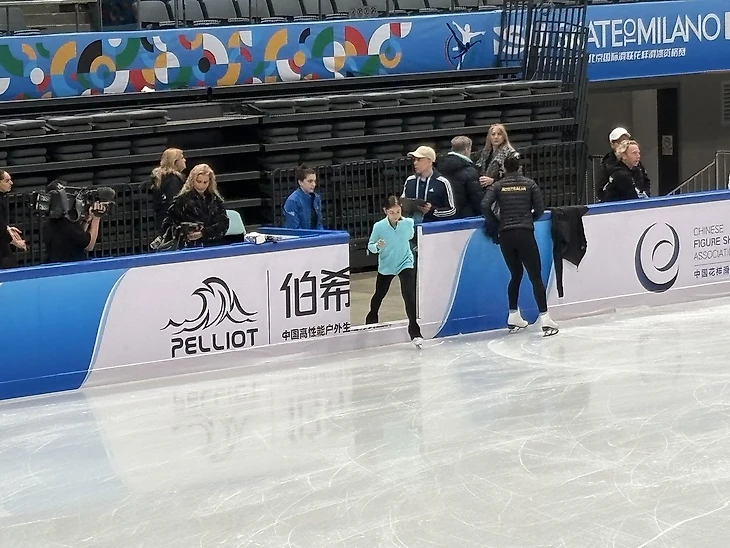 1. Пока Петр Гуменник отсыпался после ночного перелета из Петербурга, женщины провели тренировку на главной арене квалификационного турнира. Первой из российской команды появилась Этери Тутберидзе. Хотя в Пекине она заявлена от сборной Грузии.