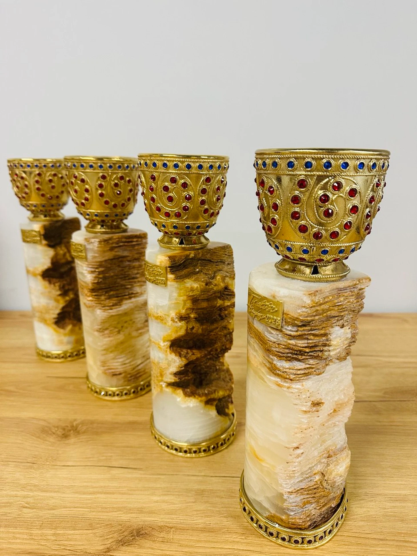 Победители Trialeti trophy получат его мини-копию. Приз выглядит внушительно: чашу поместили на основание из натурального оникса, рельеф которого тоже напоминает горную цепь.