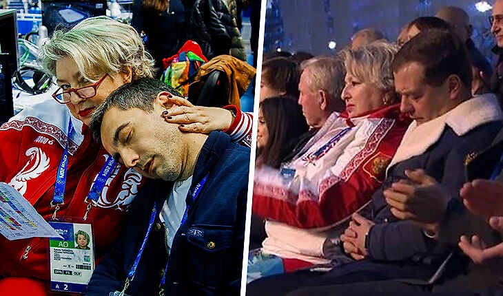 Пик их совместной карьеры – Олимпийские игры-2014 в Сочи. Там парочка запомнилась не только комментариями, но и вот такой фотографией. На церемонии открытия почти на плече у Тарасовой прикорнул Дмитрий Медведев. А на следующий день вместе с Соловьевым Татьяна Анатольевна обыграла эту сценку.