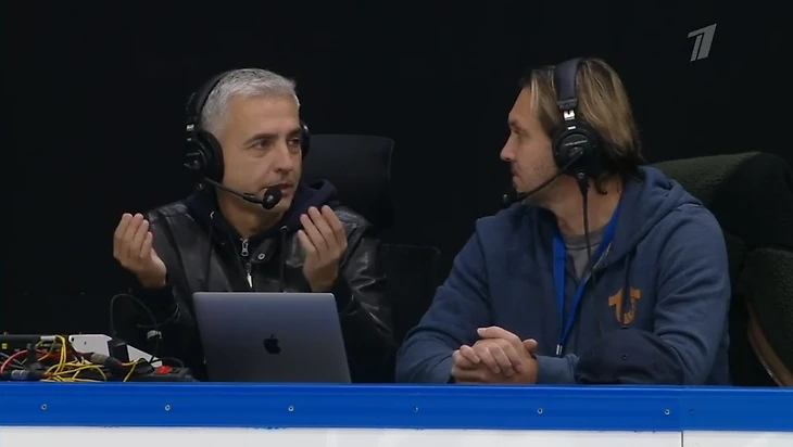 «Добрый вечер, дорогие друзья, приветствуем вас на фигурном катании. На комментаторской позиции Василий Соловьев, я очень рад вас всех ощущать возле экранов.