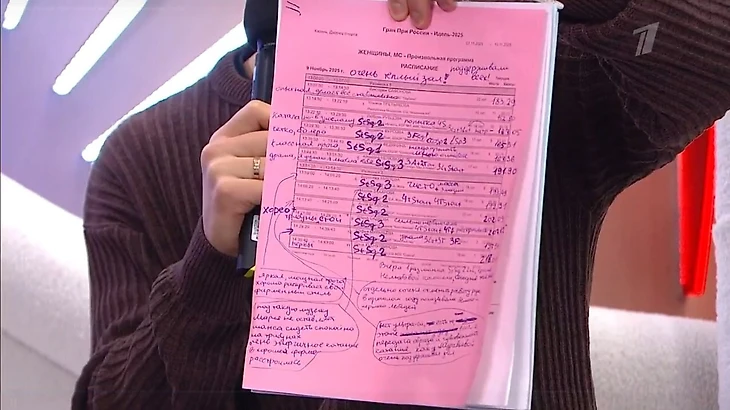 А про катание Анны Фроловой Михаил, видимо, много думал, потому что несколько раз исправлял заметки: «Нет ультра-си, (зачеркнуто) есть, но (зачеркнуто) этапе (зачеркнуто). Передача образов и чувственность катания как у Муравьевой. Очень поддерживал зал».