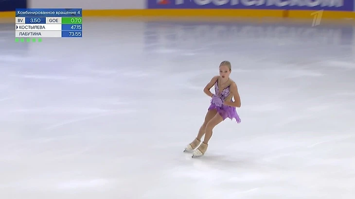 И пусть вторую оценку судьи подтягивают вслед за первой (вопрос уже к ним – зачем?), но все-таки не игнорируют еще одну проблему Костылевой – непопадание в музыку и перекат программы. Елена стабильно получает штраф в балл за то, что последнее вращение делает в спешке и уже без музыки. В этот раз это повлекло за собой второй уровень элемента и отсутствие в нем базовой позиции.