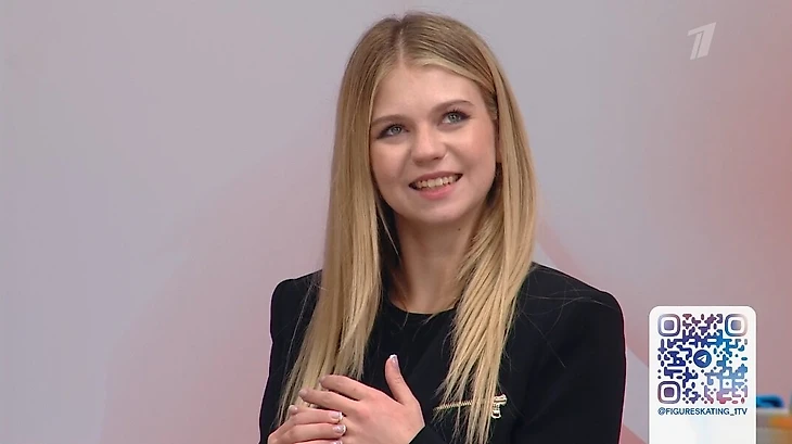 Трусова была на катке еще накануне – записывала влоги для Первого канала о выступлении юниоров. Но и на взрослом турнире, конечно, появилась. Пришла в студию в качестве эксперта.
