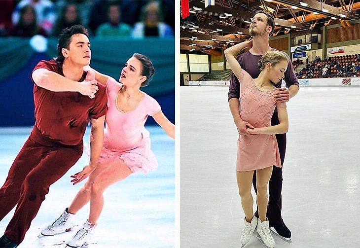 Алиса: Да, мы хотели, чтобы чувствовался намек на легендарные костюмы Кати и Сергея – при этом не выглядело их копией. Мы не они, это наше посвящение великой паре. Поэтому финальная поза – тоже цитата из их программы. Гордеева и Гриньков были уникальной парой.