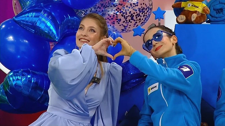 Щербаковой досталась команда розовых во главе со Львом Лазаревым, к зеленым и Трусовой попал Арсений Федотов и Лидия Плескачева, Косторная возглавила команду в голубом (диктор звал их синими, комментаторы – бирюзовыми). За нее катали Софья Дзепка и уникальная пара Полина Шешелева – Егор Карнаухов (они первыми в истории прыгнули каскад 3-3-3).