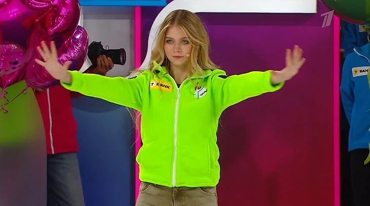 А вот Алиса Двоеглазова у зеленых осталась. Поддерживала своего молодого человека – Арсения Федотова. Он, к слову, был лучшим среди парней.