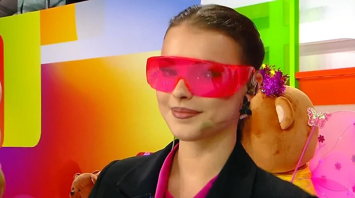 В какой-то момент Косторная подсела в команду зеленых (но как только ее показали, со смехом сбежала к своим). Обсуждали будни материнства?