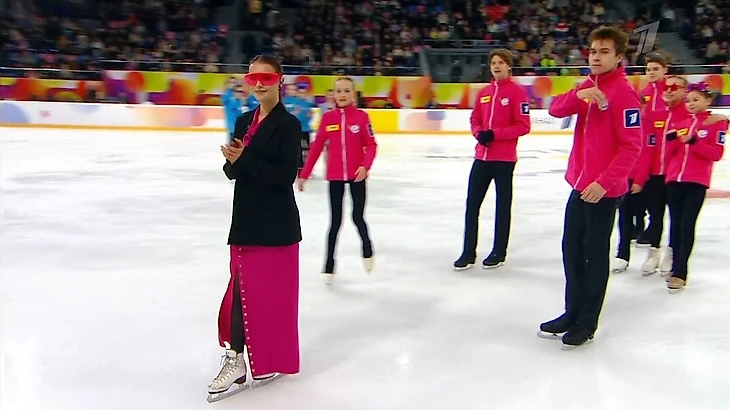 Косторная двигалась вместе с фигуристами.