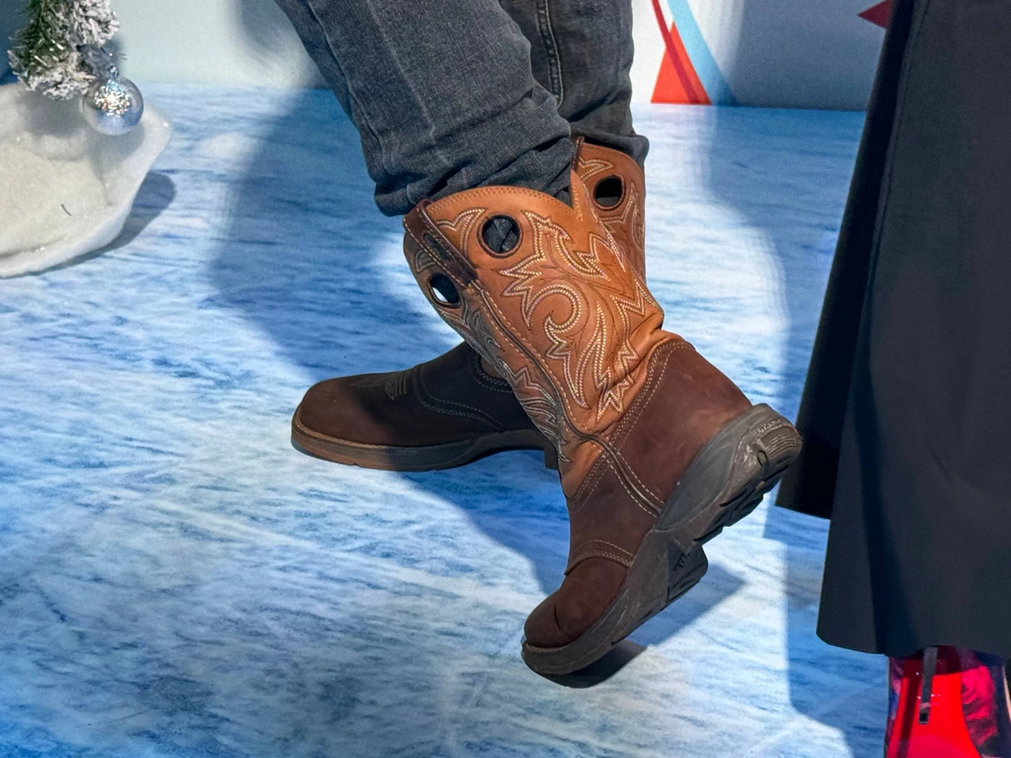 Наряды фигуристов на жеребьевке ЧР: костюм ковбоя, платье с мехом, пиджак на голое тело