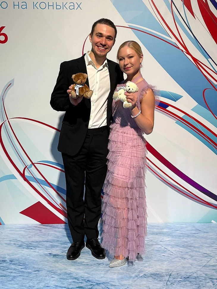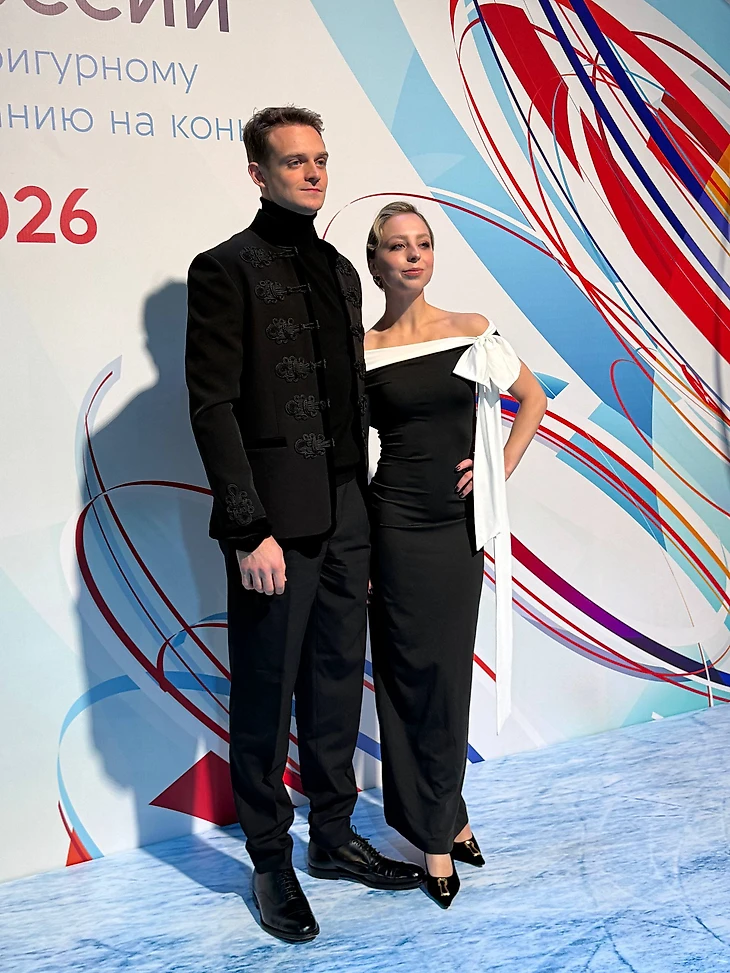 Елизавета Шичина и Павел Дрозд тоже предпочли парные наряды, их основной цвет – синий.