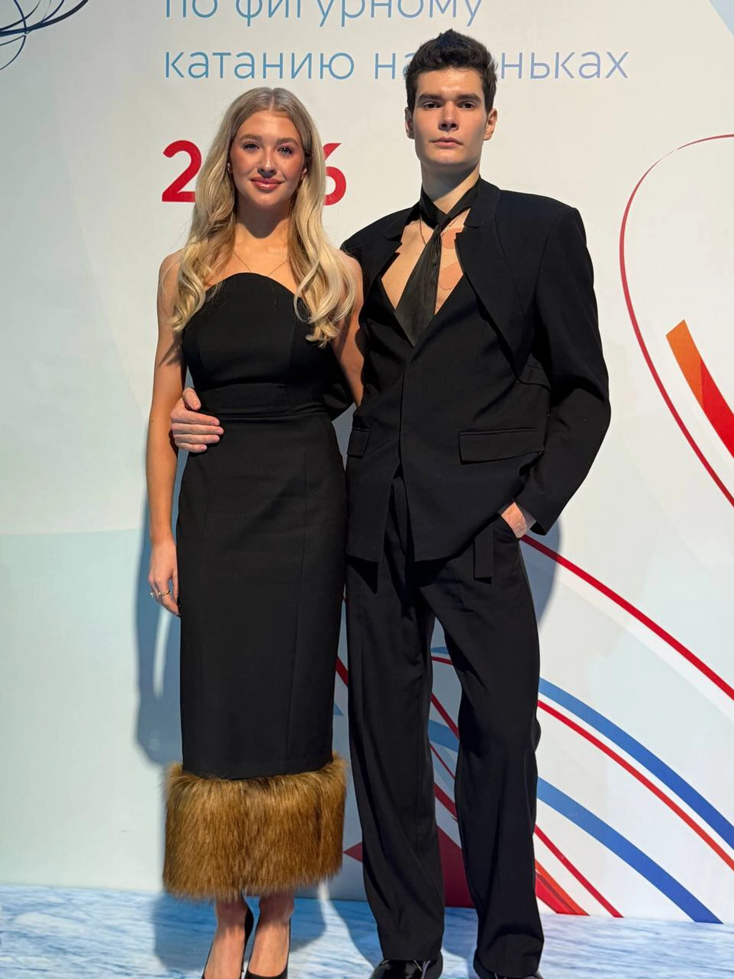 Возможно, наряд вечера: длинное черное платье с меховой отделкой Софьи Леонтьевой и пиджак на голое тело Даниила Горелкина.