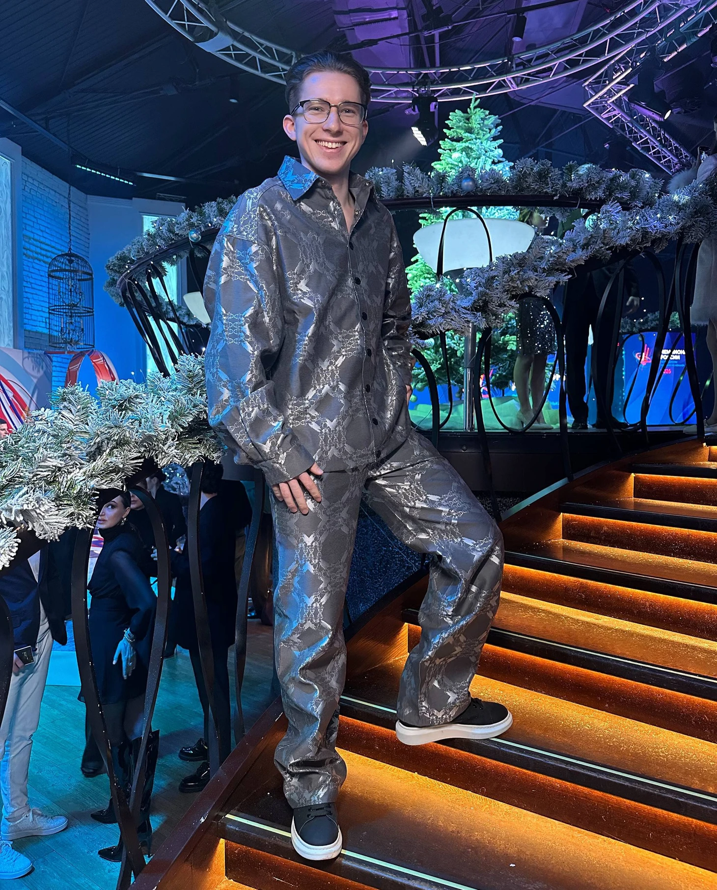 Марк Кондратюк тоже в рубашке, по традиции – необычной. Артур Даниелян выбрал белый лонгслив на пуговицах и черные брюки. Мода на рубашки с принтом в группе Светланы Соколовской распространилась и на Григория Федорова. А Даниил Самсонов в классике: пиджак, брюки и белая рубашка.