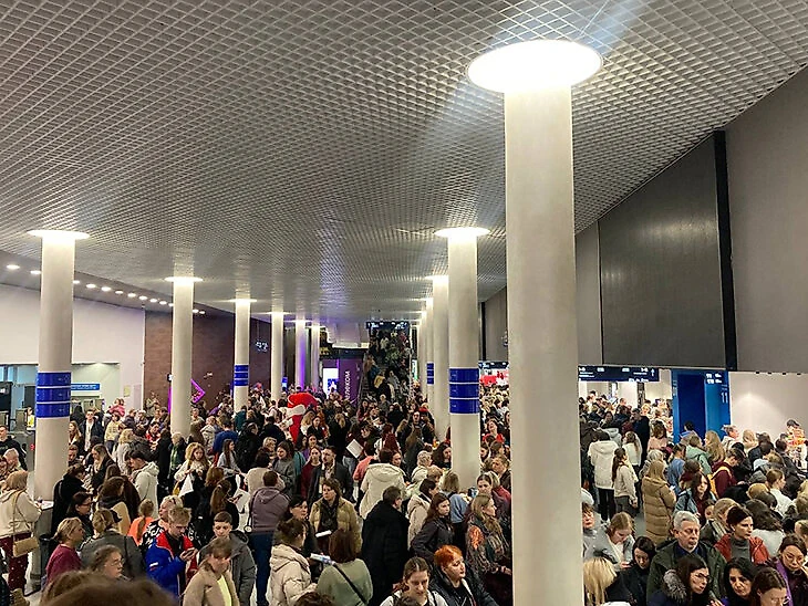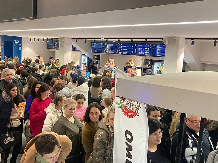 Например, узкие проходы между рядами (чтобы пропустить соседа, приходится вставать), скучное, серое, тесное пространство внутри дворца. Даже когда на трибунах было пустовато (об этом ниже), в лобби в перерывах между прокатами – дикая давка и очереди.