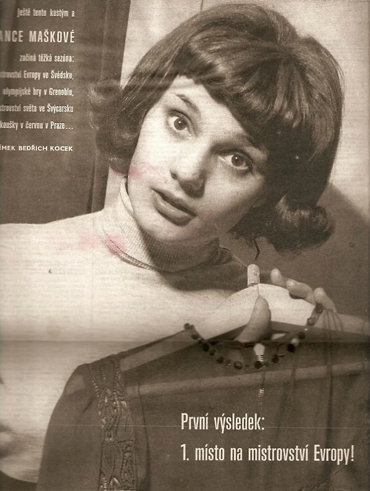 Вот что говорилось там о Машковой: «Не беремся судить о том, что снится Пегги по ночам. Но доподлинно известно одно — весь день Флеминг на коньках: тренировка — отдых — тренировка... Иначе нельзя. «Одной из самых великих фигуристок всех времен» назвала недавно французская «Экип» не ее — Пегги, а чехословацкую спортсменку Хану Машкову. Уже в Вене, где Хана была третьей, пропустив вперед Пегги и Габриэль Зейферт из ГДР, чехословацкая фигуристка стала всеобщей любимицей. Хана словно создана для фигурного катания: в спортивности она не уступает Габи, а в лиричности успешно соперничает с Пегги».
