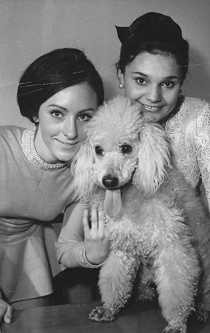Хана со своим пуделем Гипи и игрушечной собакой, подаренной ей во время показательных выступлений после ЧЕ 1968 года