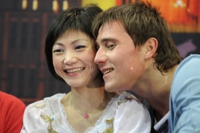 Костюмы Юко и Саши были очень похожи на чемпионский наряд Лены и Антона (ПС вот это, я понимаю, букетище в руках у Юко! Так по-дачному)) :
