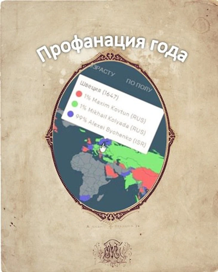 В нём и было самое интересное: во-первых, устроители поскупились на защиту от накруток. Какие там хакеры, любой мог проголосовать за одного человека несколько раз с разных браузеров или компьютеров дома. В итоге частенько мы наблюдали ситуацию, как на картинке выше. На ней, например, израильский фигурист Быченко отчего-то оказался очень популярен в одной из областей Швеции. Там он получил 99% голосов, причём количества избирателей хватило для уверенно лидерства в целом по Европе. Голосовали всем селом! Затем устроители вроде как подчистили все накрутки, но началась другая тема.