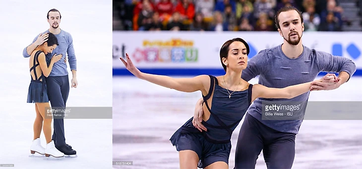 На партнере все те же черные брюки и свободная серая рубаха. Люблю лаконичность, но можно было придумать для Дениэла что-то поинтереснее. Хотя, чего я возмущаюсь. В парном катании мужчины редко проявляют смелость в плане костюмов, отдавая все лавры партнерше.