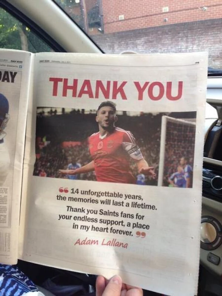 Полузащитник «Ливерпуля» Адам Лаллана попрощался с болельщиками «Саутгемптона», выкупив страницу в местной газете Southern Daily Echo.