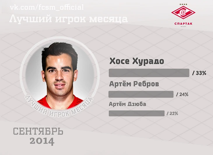 Набрав 33% голосов, первое место занял испанский полузащитник Хосе Хурадо. Второе место у голкипера и капитана москвичей Артема Реброва (24%), а третье — у нападающего Артема Дзюбы (22%).